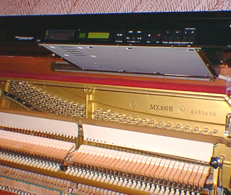 Upright Reproducing Piano, 1988 Maker: Yamaha Hamamatsu, Japan Photo on right shows "Disklavier" equipment that writes to a 3.5" diskette