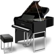 | The Pegasus grand has an ergonomically formed keyboard: the keys exhibit a slight curvature. The top raises and lowers automatically at the touch of a switch. The piano stool is a part of the instrument, and is adjustable both in height and distance from the keyboard. The seating area is leather upholstered. A hydraulic safety function keeps the fallboard from slamming shut. |